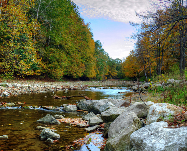 Within the park boundaries, Big Creek flows past the picnic area and empties into the Grand River. Kellogg Creek flows into Big Creek near the parking lot. Fishermen cross the creek and floodplain to fish the river for steelhead trout and smallmouth bass. Look for bank swallows and cedar waxwings that catch insects above the waters of Big Creek.
