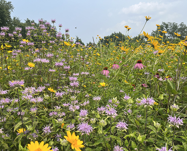 Meadow conversions are an important piece to make Painesville Township Park more wildlife friendly. Plant species chosen for the park were geared toward promoting a wide variety of wildlife. Late summer and fall blooming species like New England aster and tickseed sunflower were planted to help fuel monarchs on their southward migration. Plants with nutrient-dense seeds like wild senna and partridge pea were chosen to help provide food for seed-eating wildlife in the fall and winter months. A variety of wildflowers in different colors were planted to attract a variety of pollinators. The insects that are attracted to the meadows will then help to feed other wildlife.