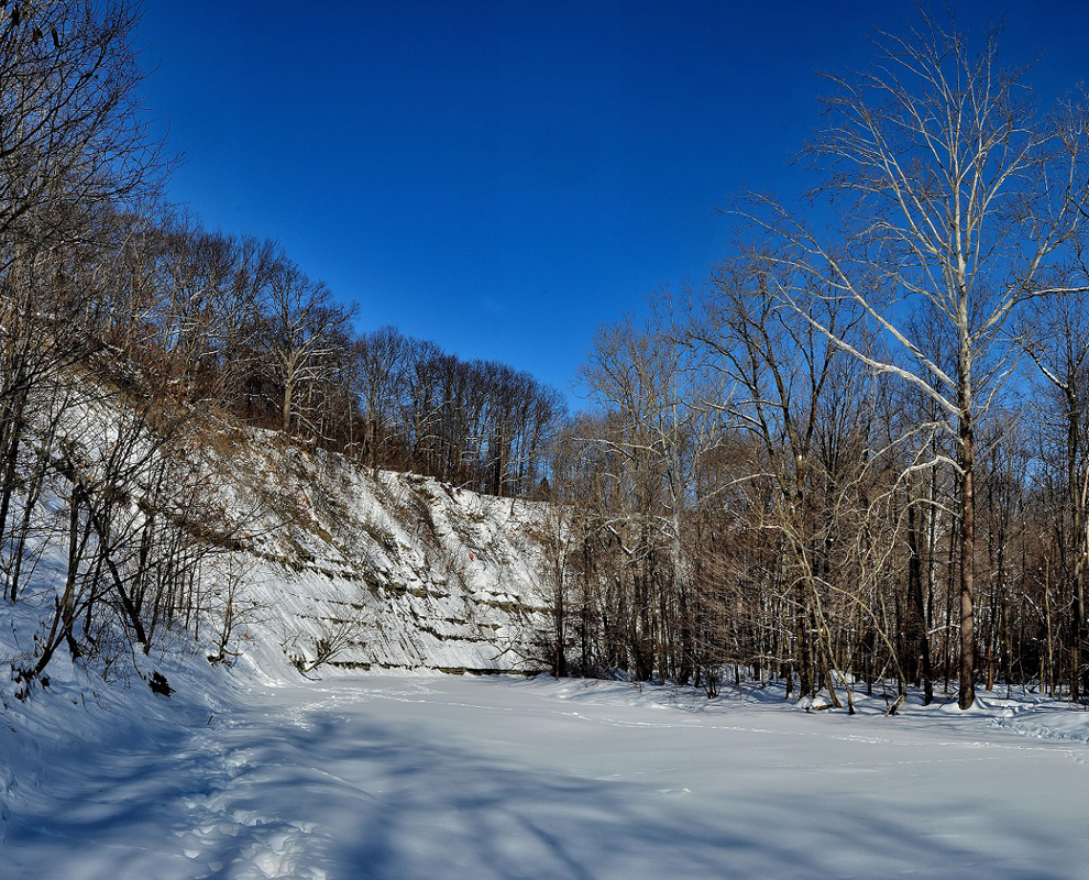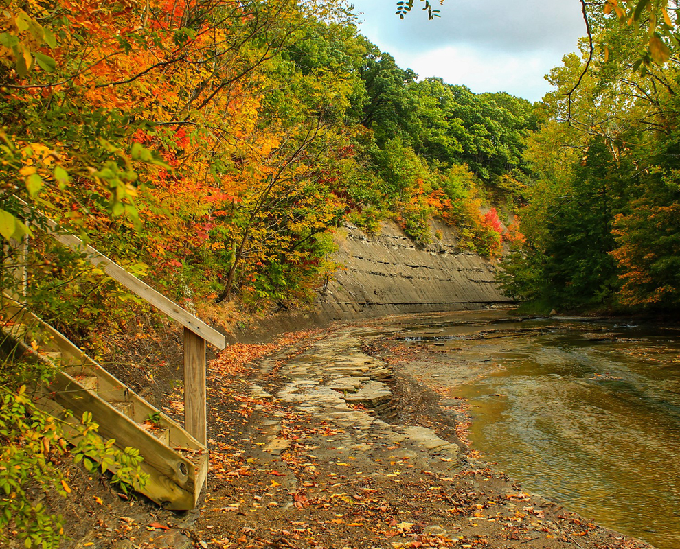 Abundant wildlife can be found in this valley, and the creek is well known for its clean water and fine steelhead fishing. Big Creek supports a variety of native fish, including shiners, stonerollers and darters. In the fall and into late winter, steelhead trout make their run here to spawn. Anglers will enjoy fishing along the banks of Big Creek.