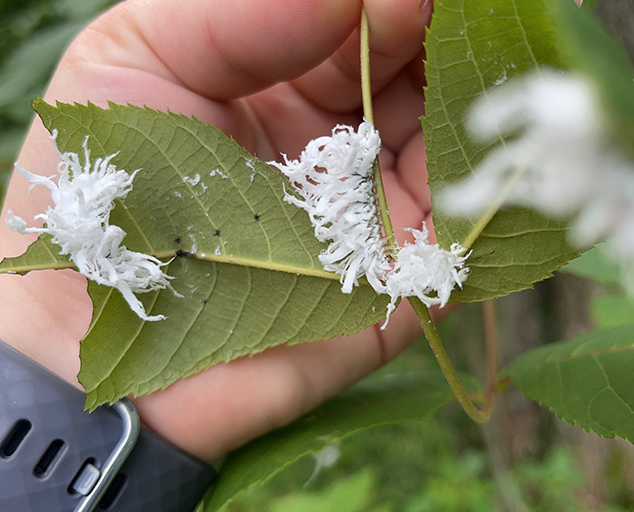 Our last invertebrate looks like an alien: the butternut woollyworm. These masses of moving wool are the larvae of a type of insect called a sawfly, which is a small non-stinging wasp-like insect. The waxy filaments that are seen on the back of the butternut woollyworm are the remnants of previous sheds. It is believed that these long waxy filaments act as a deterrent to predators by making them harder to eat. Butternut woollyworms feed primarily on black walnut, butternut and hickory species.