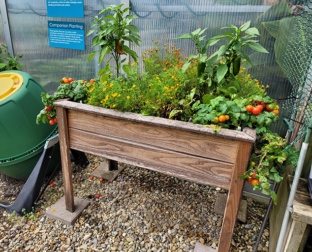If vegetable gardening is what you’re looking for, you may want to consider a stock tank that you mount on wheels for easy mobility. There are a multitude of large-scale containers on the market. Farmpark uses 100-gallon tanks, but the bottom half can be filled with branches, small logs and other organic mater to decompose slowly, which saves on the cost of potting soil but offers the capacity to hold moisture far longer than smaller containers. Farmpark often uses sheep’s wool to fill the bottoms of planters. Another reason to plant in raised containers is the ability to plant early crops like spinach, sweet peas, lettuce or carrots. These veggies grow in cooler temperatures in well-drained soil and the raised bed is ideal, easy to weed, and can be covered should an unexpected cold snap hit. Later, these spring vegetables can be replaced by summer favorites like tomatoes, peppers cucumbers and other garden favorites.
