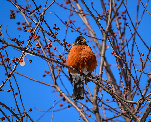 You can experience flocking birds if you take a winter walk in one of the parks. To find forest flocks with chickadees, take a walk at Hogback Ridge Park, Jordan Creek Park, Girdled Road Reservation, Penitentiary Glen Reservation or Chapin Forest Reservation. If you are interested in seeing a waterfowl flock, try searching the water at Painesville Township Park, Veterans Park or Fairport Harbor Lakefront Park. Sparrow flocks can usually be found at Lake Erie Bluffs, Beaty Landing, River Road Park or Chagrin River Park near dense brushy areas. American robin and cedar waxwing flocks can be found anywhere with fruiting trees present like Lake Erie Bluffs, Penitentiary Glen Reservation, Lakeshore Reservation or Hogback Ridge Park. No matter what park you choose, you have an excellent chance to experience one of these flocks yourself. You just need to stroll through nature and take time to look and listen.