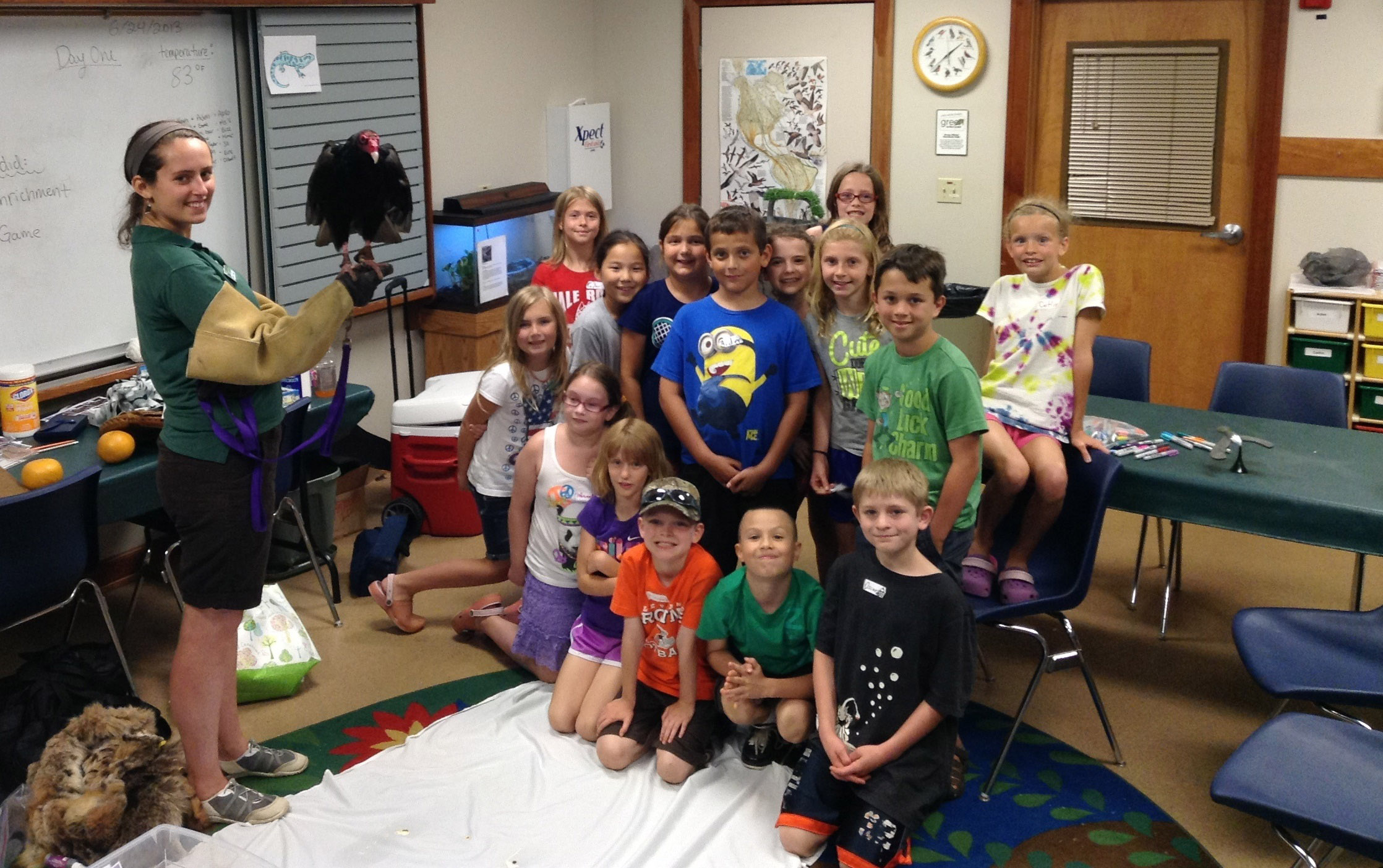 It is with great sadness that we announce the passing of Ms. V the turkey vulture. Ms. V was our longest-tenured animal ambassador and had been with us for 39 years. She was admitted to the wildlife center on September 21, 1985 as an orphan after being taken from her nest by two young boys. Vultures are very social and live in family groups. Although she did not have any physical injuries, she considered humans her “family” and was too imprinted to release. Because she was taken from her nest as a baby, she never developed the skills and behaviors necessary to survive in the wild.