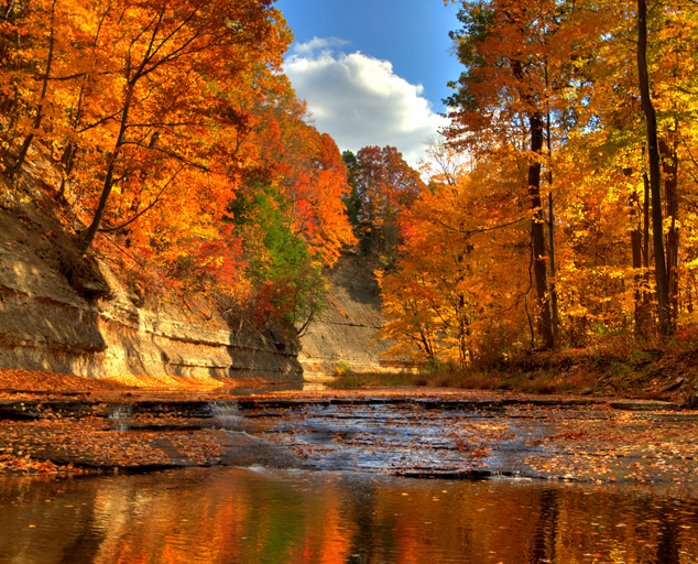 The landscape at Hogback Ridge Park includes upland hardwood forests, hemlock ridges and the floodplains of Mill Creek and the Grand River. An abundance of spring wildflowers provide a spectacular show. Late March through the end of May is the best time to view this colorful display.