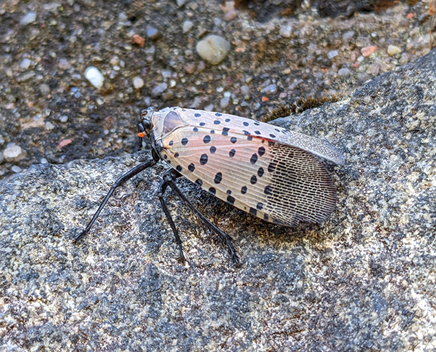 There is a new insect in town, and it isn’t exactly a welcome newcomer. The spotted lanternfly (Lycorma delicatula) has made it to Lake County, and it appears that it is likely here to stay. Although this insect can’t sting or bite people, it may cause problems for our trees and shrubs.