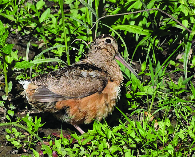 “Peent! Peent!” An animal calls from the darkening field. The mystery creature keeps calling. Try as you might, you just cannot seem to find the origin of the calls in the twilight. You walk on and a figure explodes from the ground near you. A football-sized bird with a long beak is silhouetted against the purpling sky. It disappears further into the darkness, and all is silent. Then comes a “peent” as the bird settles itself again in the dark. You puzzle over this winged football for a few moments wondering what you just experienced. This bird goes by many names: “timberdoodle,” “Labrador twister,” “bog sucker,” “mud snipe,” or “hokumpoke.” Let me introduce you to the American woodcock.