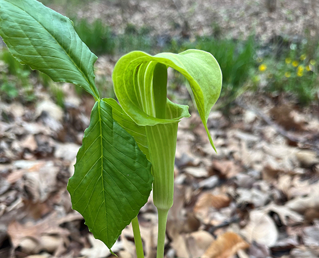 Next up is the spring blooming bear corn. Bear corn is named for the strange corn cob like appearance of its stems that contain its small tubular shaped flowers. This wildflower cannot produce its own food because it lacks the green pigment chlorophyll that is needed for photosynthesis. Bear corn derives its nutrients by acting as a parasite on the roots of woody species like oaks and beech. Fun fact: it takes bear corn four years of growth underground before it emerges above ground.