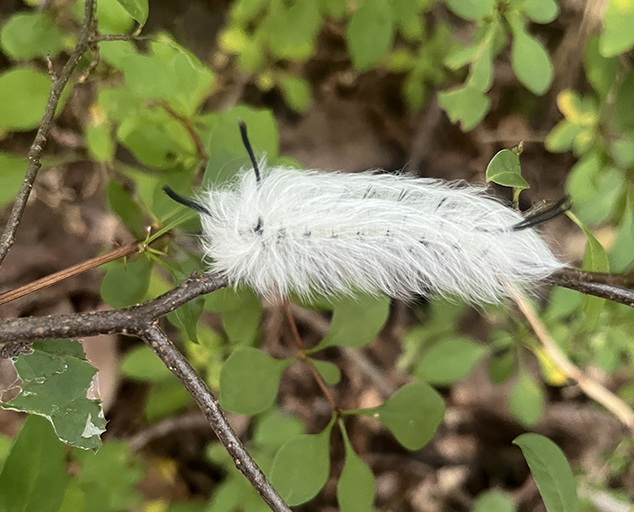 Our last invertebrate looks like an alien: the butternut woollyworm. These masses of moving wool are the larvae of a type of insect called a sawfly, which is a small non-stinging wasp-like insect. The waxy filaments that are seen on the back of the butternut woollyworm are the remnants of previous sheds. It is believed that these long waxy filaments act as a deterrent to predators by making them harder to eat. Butternut woollyworms feed primarily on black walnut, butternut and hickory species.